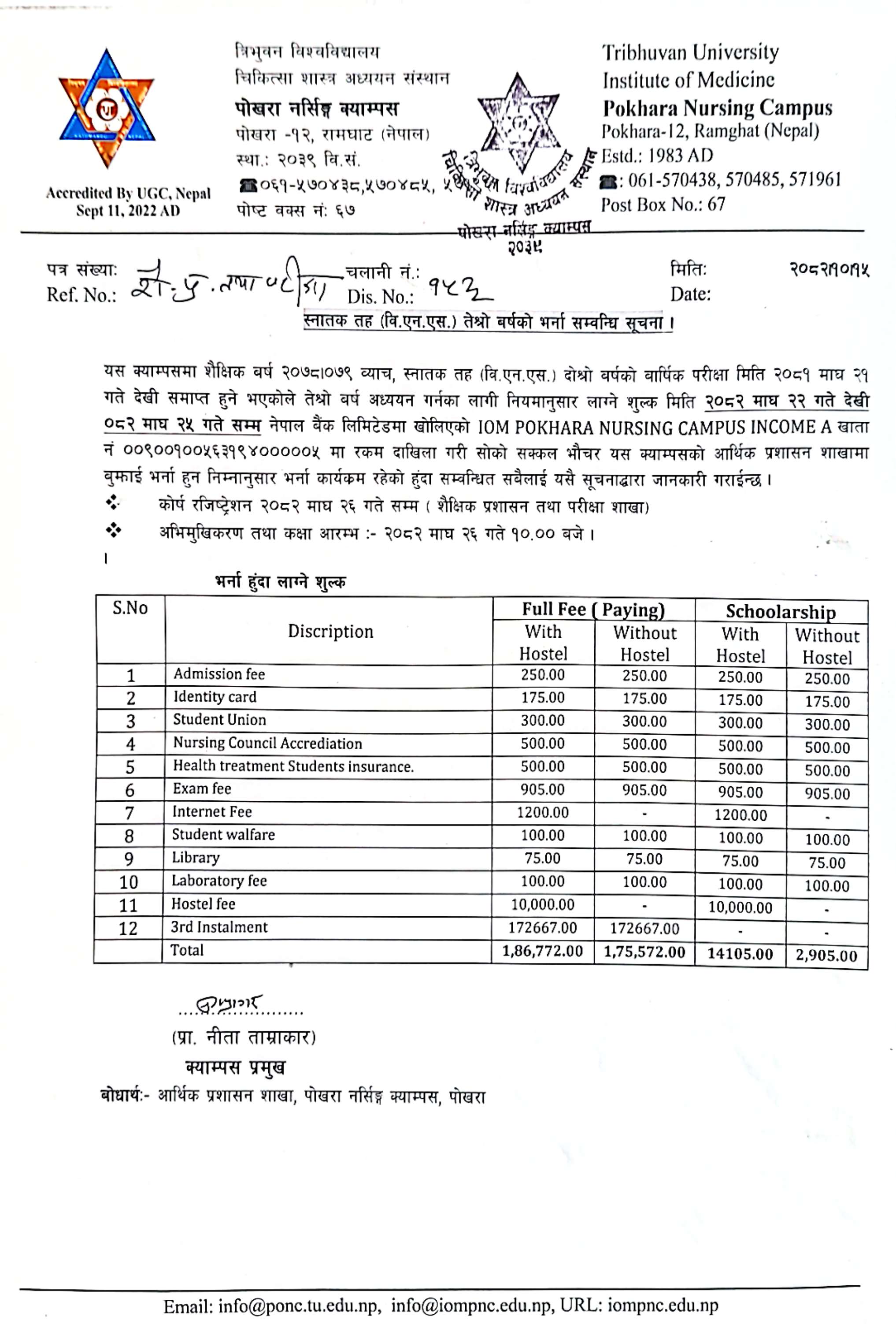 BNS and BSc Nursing प्रथम वर्षको कक्षा संचालन मिति...