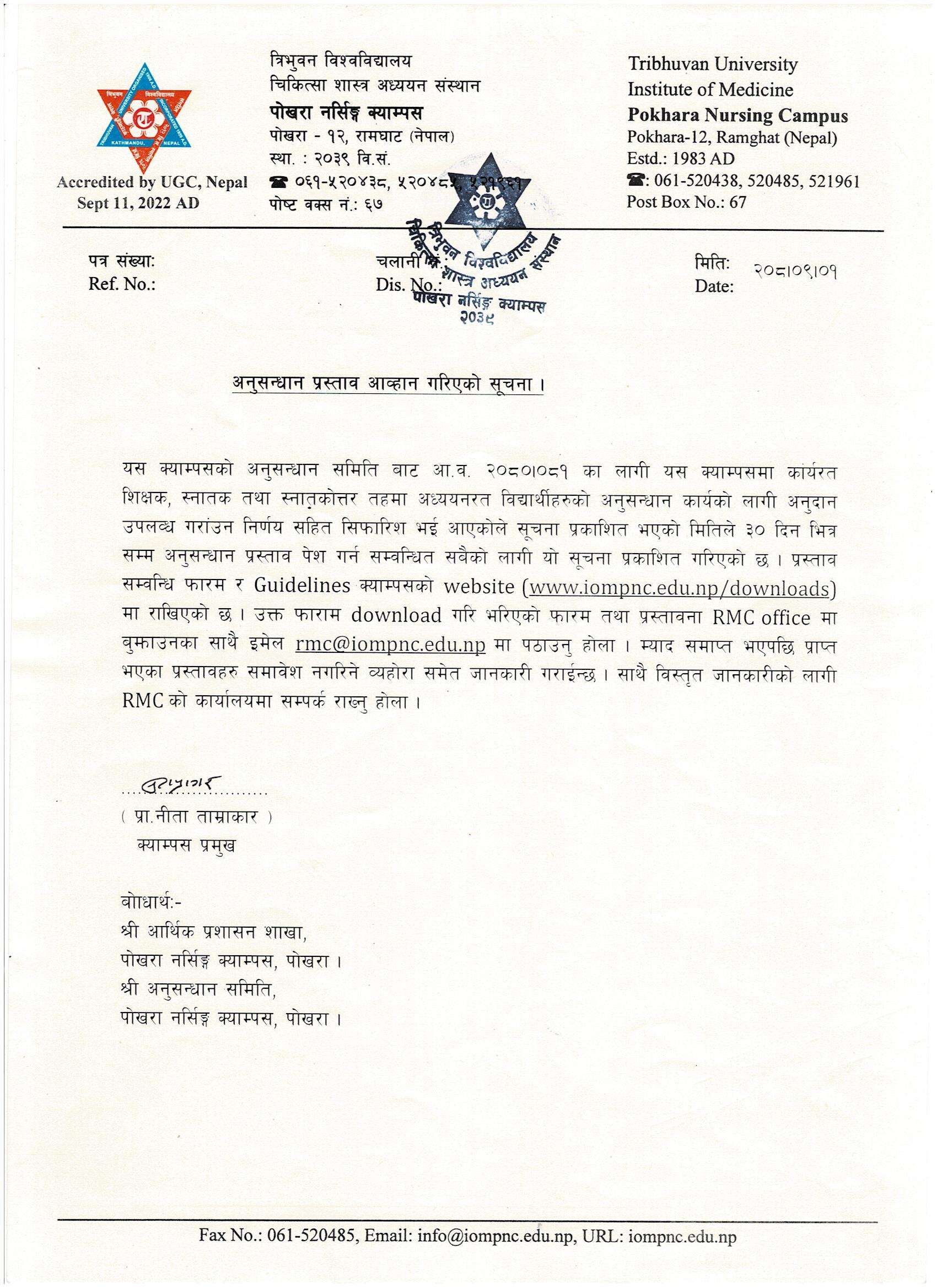 अनुसन्धान प्रस्ताव अावहान गरीएकाे बारे सूचना