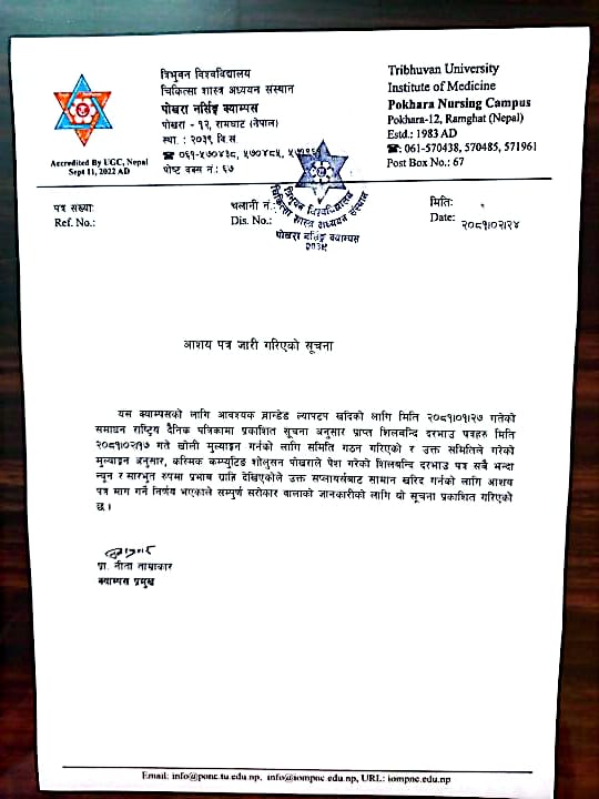 अाशय पत्र जारी गरिएकाे सूचना