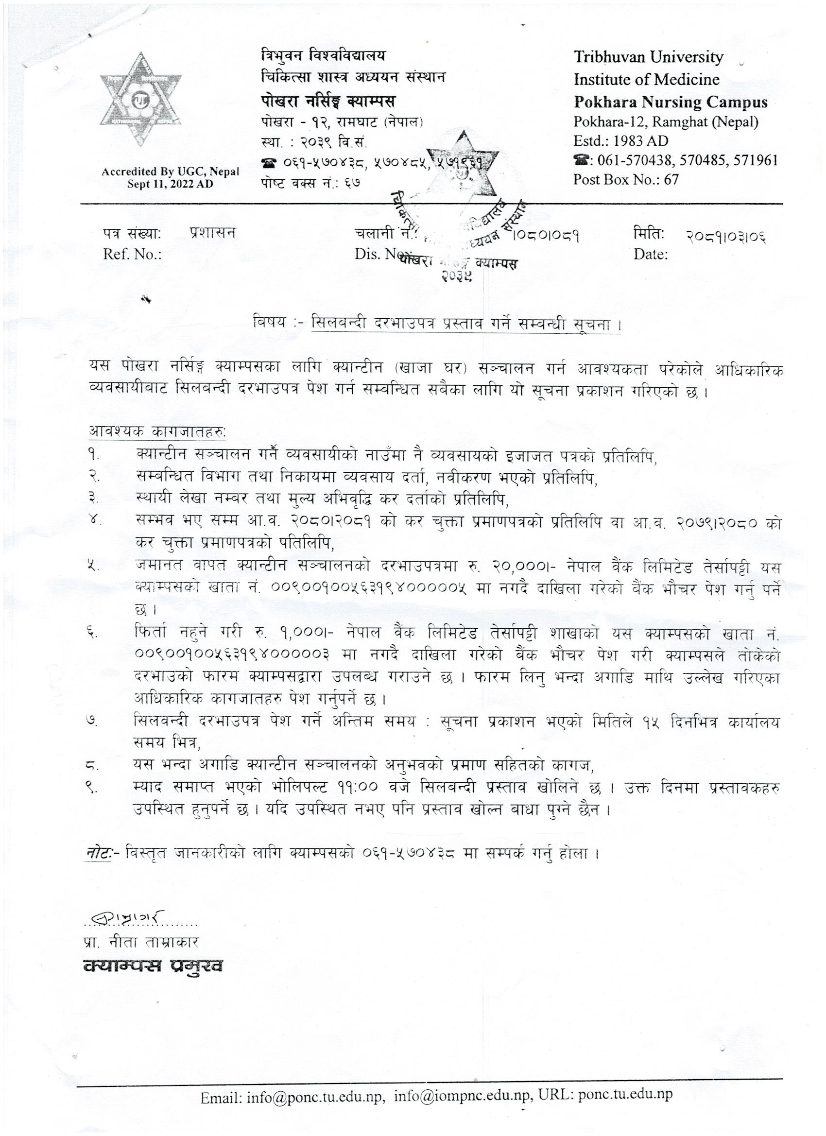सिलबन्दी दरभाउपत्र प्रस्ताव गर्ने सम्बन्धी सूचना ।
