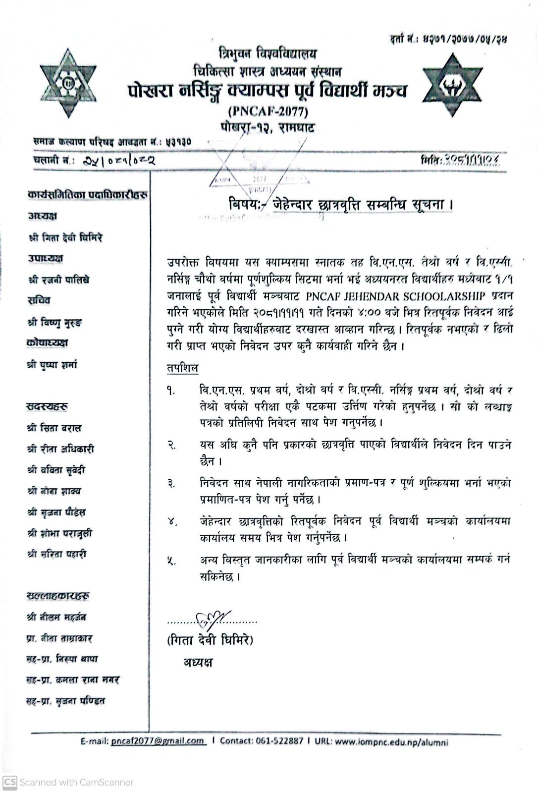 जेहेन्दार छात्रवृत्ती सम्बन्धि सूचना