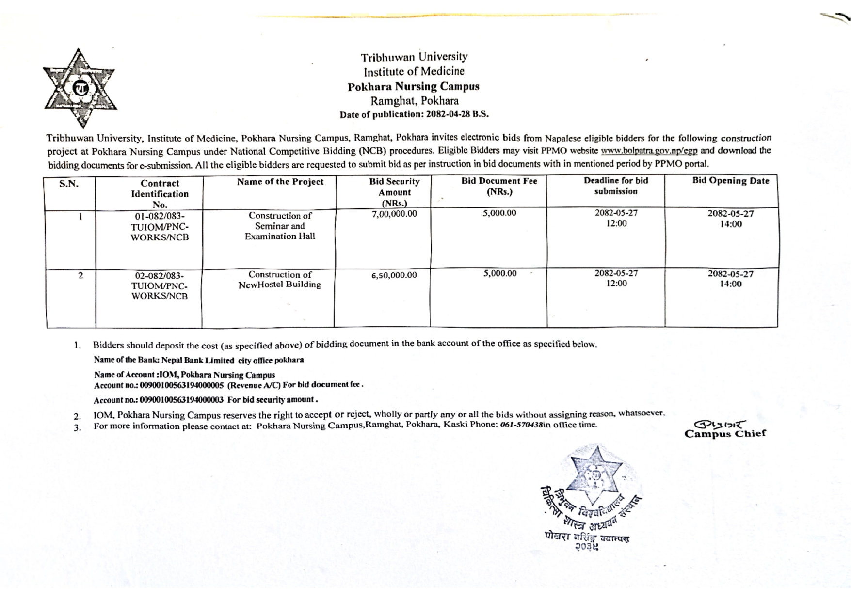 स्नातक तह वि.एन.एस. नर्सिङ्ग (BNS) तृतीय वर्षको वर्षिक नियमित तथा पुनः परीक्षाको संशोधित परीक्षा तालिका सम्बन्धी सूचना